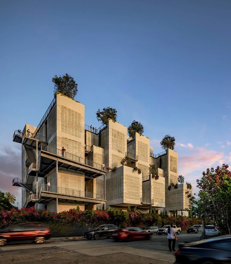 這座創(chuàng)新性的垂直陵墓矗立于好萊塢永恒公墓之上,高達(dá) 100 英尺(30.5米),陵墓內(nèi)部設(shè)有五層,每層高達(dá) 20 英尺(6.1米),混合配置了墓穴和骨灰龕。