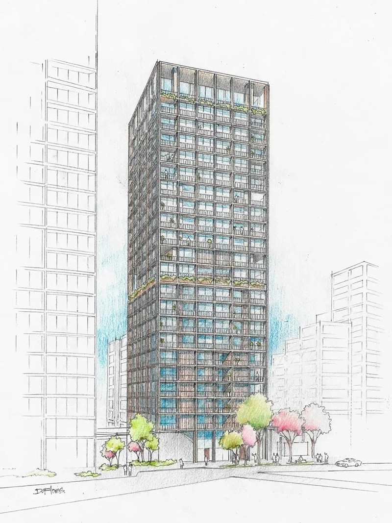 Bulnesia塔是一座90米高的住宅樓,以巴拉圭國(guó)樹(shù)Bulnesia sarmientoi(綠檀木)為靈感,建筑外立面通過(guò)豎向線條與鏤空結(jié)構(gòu)模擬樹(shù)木紋理,象征自然與城市的共生。