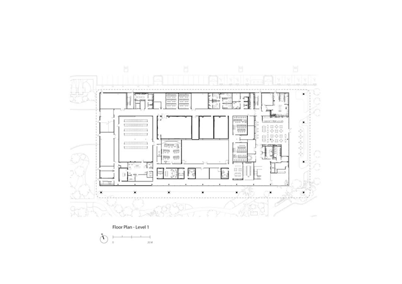 這座新建筑位于TPCSawgrass球員體育場(chǎng)球場(chǎng)南側(cè),緊鄰 PGA巡回賽總部大樓,后者也是由 Foster +Partners 設(shè)計(jì)。建筑采用與總部一致的設(shè)計(jì)語(yǔ)言,南、東立面設(shè)有寬敞的柱廊,大型懸挑屋頂提供遮蔭,同時(shí),玻璃幕墻確保了充足的自然采光,并可眺望水景及周邊園區(qū)。園區(qū)內(nèi)設(shè)有景觀步道連接兩座建筑,方便員工與訪客通行。建筑材料選用白色金屬、混凝土與玻璃,以保持整體風(fēng)格的協(xié)調(diào)統(tǒng)一。