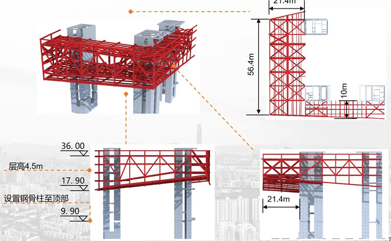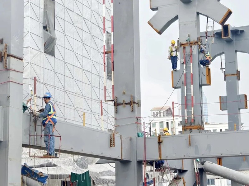 作為深圳市“十四五”規(guī)劃重點推進(jìn)的重大文化設(shè)施之一,深圳市文化館新館以其復(fù)雜的建筑造型和多變的內(nèi)部空間備受矚目。這座建筑挑戰(zhàn)了21米的大懸挑空間,通過嚴(yán)格的工區(qū)制管理和精細(xì)化施工,克服了鋼結(jié)構(gòu)深化設(shè)計、巨型桁架施工、懸挑區(qū)施工等鋼結(jié)構(gòu)施工難點,打造了多層次下掛鋼結(jié)構(gòu)安裝方法和大懸挑桁架分層安裝方法兩項專利技術(shù),摘得廣東省鋼結(jié)構(gòu)協(xié)會優(yōu)質(zhì)工程最高獎項——廣東鋼結(jié)構(gòu)金獎(粵鋼獎)。