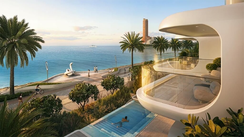 住宅部分包含950套精致住宅,涵蓋一至四居室公寓、復式公寓、頂層公寓及濱海別墅,其中75%以上戶型享有無遮擋的壯闊海景。住宅塔樓所處的42,000平方米基地內(nèi),規(guī)劃有園景花園、庭院、泳池、屋頂無邊泳池、360°觀景餐廳及配套的海灘俱樂部,為住戶提供一站式高端濱海生活體驗。